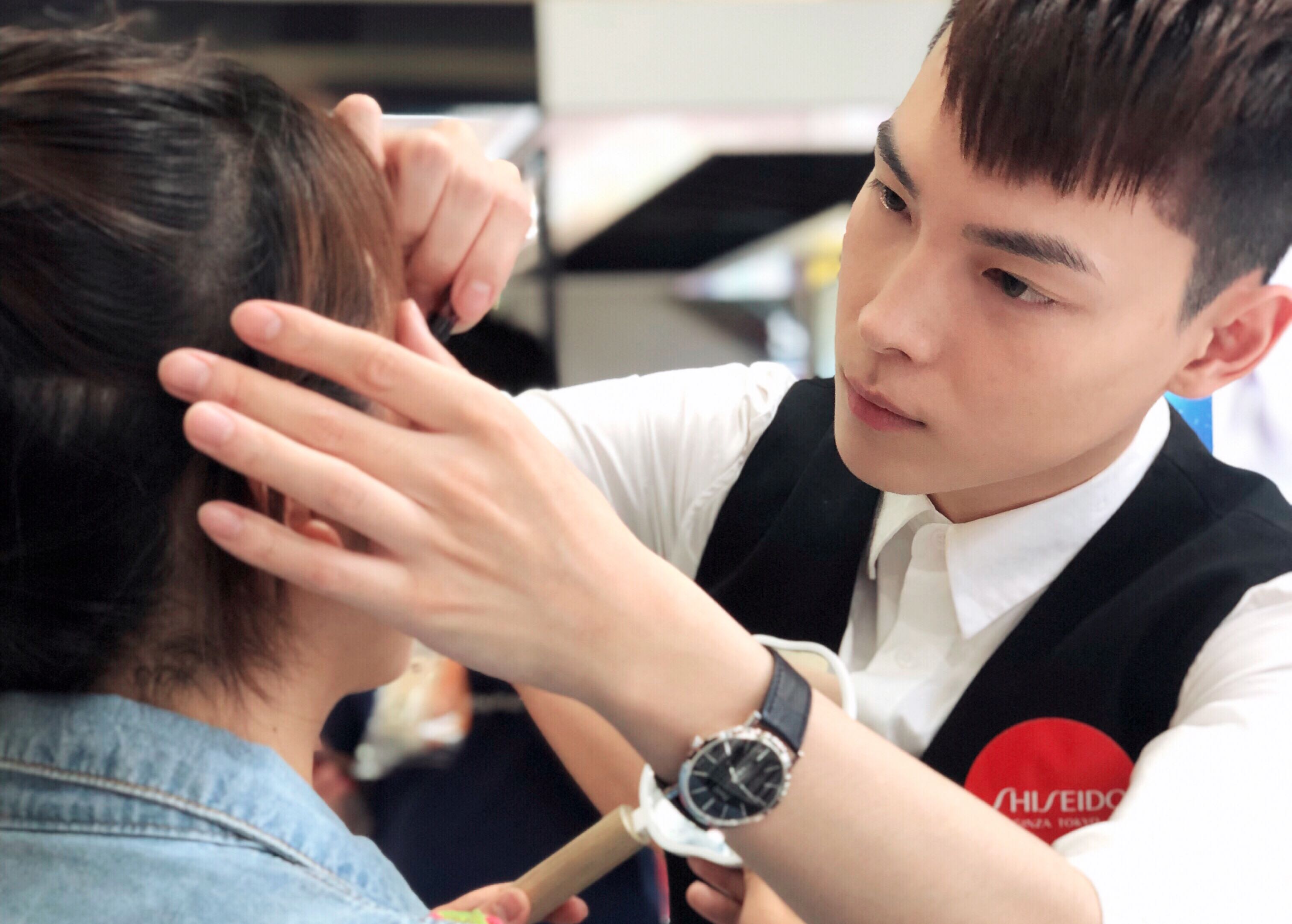 文栋现在成了整个柜台的“底妆大师”。他强调,这不是自封的,是在品牌内部经过考核和评比的。而为了实现这个目标,他在最初学习的那几个月,每天都提前至少一小时上班,拿自己练完手,再为同事挨个上妆。最初的时候掌握不好力度和刷子上脸的角度,总能把同事戳疼,直到有一天,所有的同事都告诉他,“你终于画得又舒服又服帖了”。