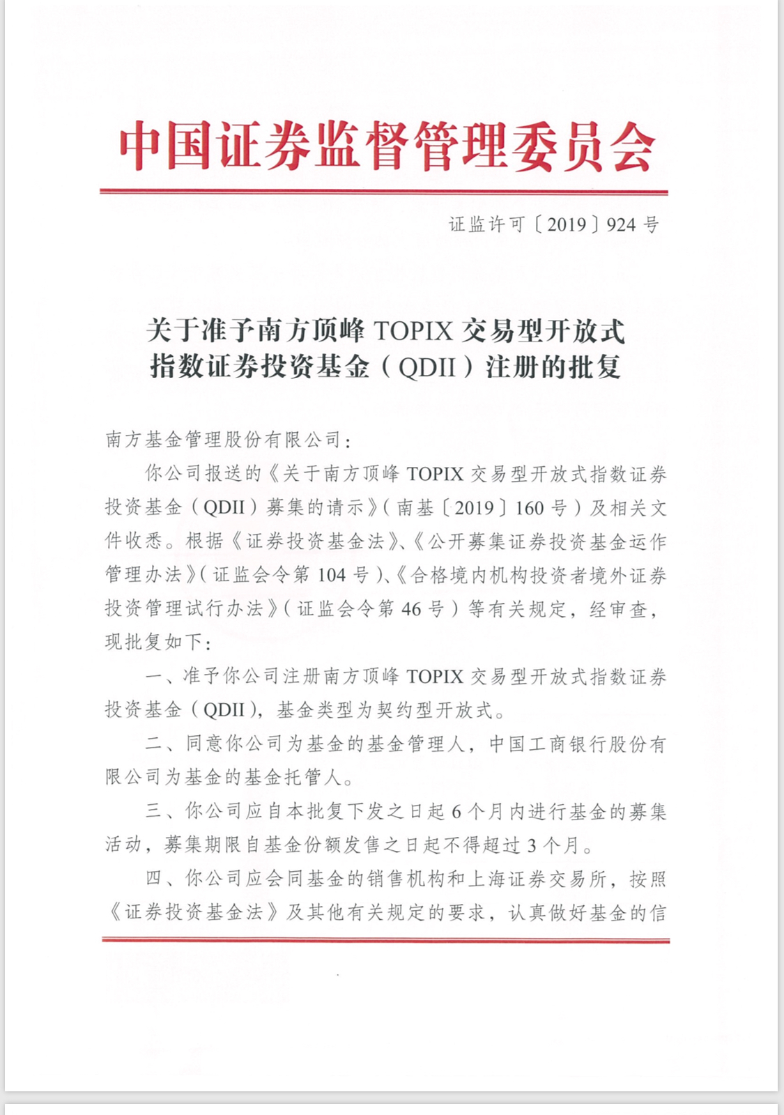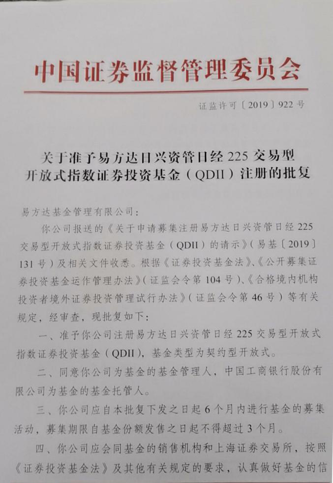 5月24日,首批中日互通ETF获批,最早上报相关指数基金产品的四家基金公司易方达、华夏、华安、南方各有一只产品获批。