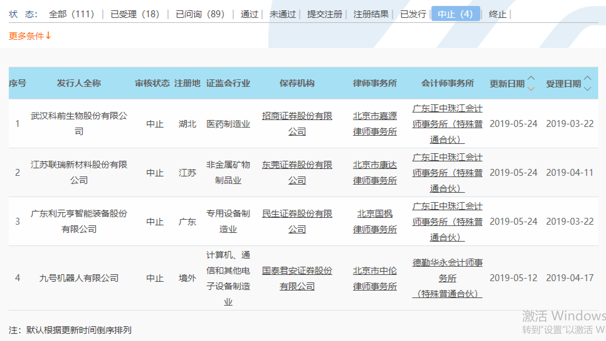 5月24日,上交所网站上科创板申报企业状态栏的“中止”数目,从“1”变成了“4”,九号机器人有限公司已不再孤单,另有广东利元亨智能装备股份有限公司、江苏联瑞新材料股份有限公司、武汉科前生物股份有限公司等3位新晋者与之为伴,值得注意的是这3家企业的会计师事务所均为“广东正中珠江会计师事务所(特殊普通合伙)”。
