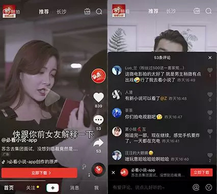可以说这两种方式是非网络文学爱好者主动接触小说最常见的方式,不过自近两年短视频的迅猛发展,其“短平快”式的传播手段大受观众青睐后,各大领域的产品都开始纷纷涌现其中。于是形式多样、创意满满、快速戳中观众嗨点的短视频也慢慢成为了网络文学作品的营销天堂。