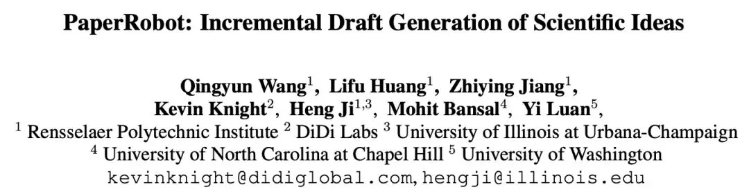 这篇题为PaperRobot: Incremental Draft Generation of Scientific Ideas的论文已被ACL 2019录取,近日在推特上引起大量关注。