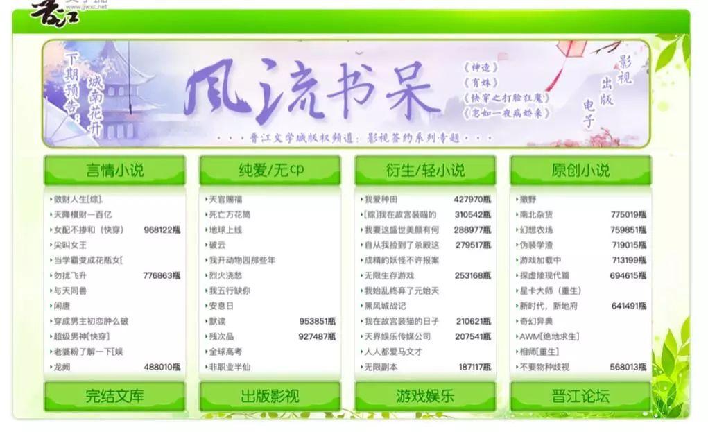 数据显示,晋江文学城从2003年成立截至今年4月,网站注册用户数超过3297万,日均日平均在线时间达到94.19分钟,用户除了国内,还包括美国、加拿大、澳大利亚等海外用户。而网站在线网络小说311余万部,已出版小说7513余部,签约版权作品25万余部,平均每个月新增签约版权在2800部以上。注册作者数逾171万,平均日更新字数超过3600万,网站累计发布字数超过753亿。
