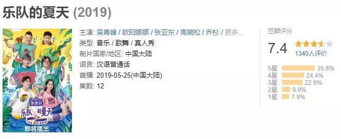 话不多说,《乐队的夏天》首播战绩如何呢?有没有完成S+级综艺应有的市场反响呢?口碑方面,截至目前,其豆瓣评分为7.4分,相比此前的乐团综艺有所提升,但与同为二季度播出的优酷《这就是街舞2》9.5分、腾讯视频《忘不了餐厅》9.4分相比仍有较大差距。
