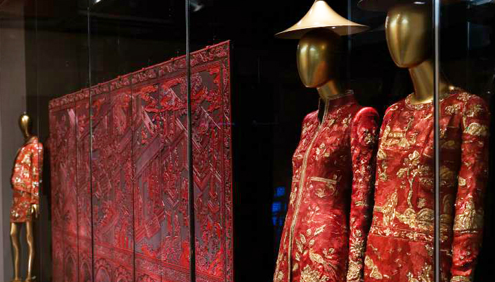 展览使用了物件、照片、电影片段、衣饰和声光特效等多种方式图解中国文化对西方时尚的影响。和中国主题相关的140套高级成衣中有末代皇帝溥仪穿过的长袍,Christian Dior在1951年使用书法图案布料制作的晚装、Alexander McQueen于2006年秋冬推出过一袭真丝织锦长裙、Ralph Lauren设计的2011年秋冬系列晚装、中国设计师Laurence Xu为范冰冰设计的龙袍...其中来来去去都逃离不了几大中国元素:龙凤、书法、青花瓷、大红、大金。