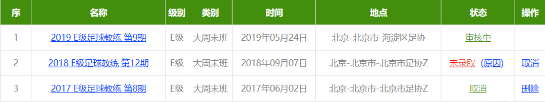 不过报名之前,需要在足协官网进行身份注册,等级个人信息以及运动经历。由于每一期班预报名人数最大为40人,而最终录取最大人数为32人,因此想要成功报上名需要在第一时间抢上报名资格后,通过足协的筛选才能正式获得培训班的上课资格。