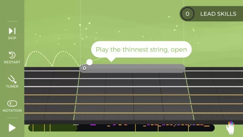 新一代的乐器教学 App 都有麦克风识别功能,它能告诉你哪里弹得对,哪里不对,就好像有一个老师在虎视眈眈看着你一样。不同风格,不同级别,都可以在这里找到进一步的办法,你可以免费试用两周。Yousician 的吉他“谱”也非常直观有趣。