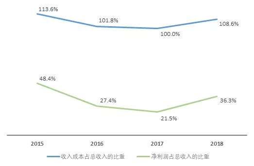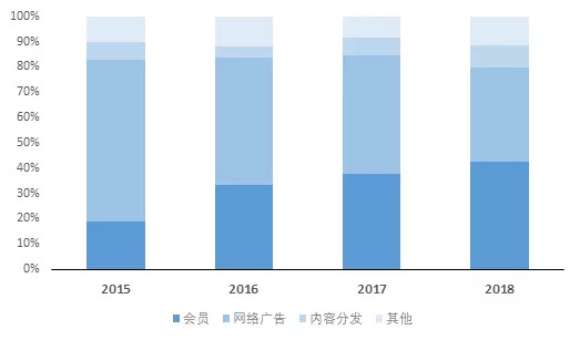 收入成本占总收入的比重和净利润占总收入的比重的变动方向基本上是同步的。在会员收入和网络广告收入出现此消彼长态势的情况下,虽然2018年净利润大幅度亏损的部分原因是自制剧项目增多带来的内容投入成本上的前置,但是隐藏在数据下的更多的是收入增长放缓的隐忧。