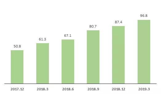 爱奇艺2019年一季度报显示,订阅用户从2018年3月31日的6130万增加到2019年3月31日的9680万,同比增长58%。而截至2018年12月31日,订阅用户总数为8740万,一季度环比增长11%。