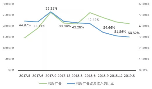 这一点在近几个季度体现的更加明显,在会员服务带来的收入稳步增加的情况下,网络广告服务带来的收入出现了减少。部分原因在于会员数量的增加造成了平台可供给广告主的资源减少。反映到总收入上,就是近几个季度爱奇艺的总收入基本持平。