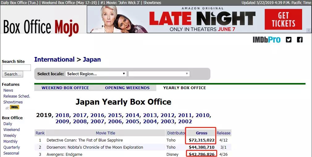 这一次在日本,《复联4》可谓完败于《柯南》的新作剧场版。