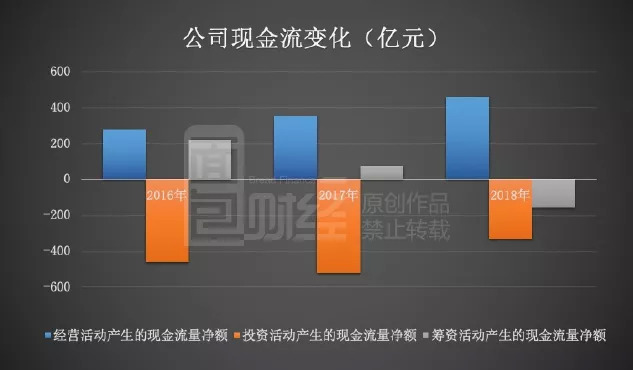 中国铁塔的发展依赖较高的资本开支,上市之前主要通过债务融资,负债规模较大。2017年底,公司总负债1951亿,其中流动负债1500亿,由此导致公司利息支出负担较高。2018年,公司IPO募集资金净额约470亿元,经营活动产生的现金流量净额约455.4亿元,但现金及现金等价物仍减少30亿元,除了资本性支出之外,主要就是用于偿还债务。