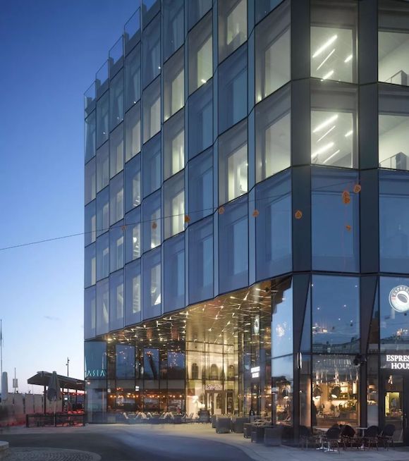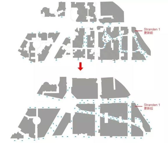 Stranden 1 所在的阿克尔码头是挪威奥斯陆市中心热门的购物、休闲娱乐地区。伴随着区域整体升级,Stranden 1 也根据新的区域规划做出了相应的改变。整合后的建筑入口位于西南侧和东侧,连接区域中心广场和码头间穿梭的人流,东侧面向码头的主入口向内凹口,向市民和游客呈现出邀请的姿态。
