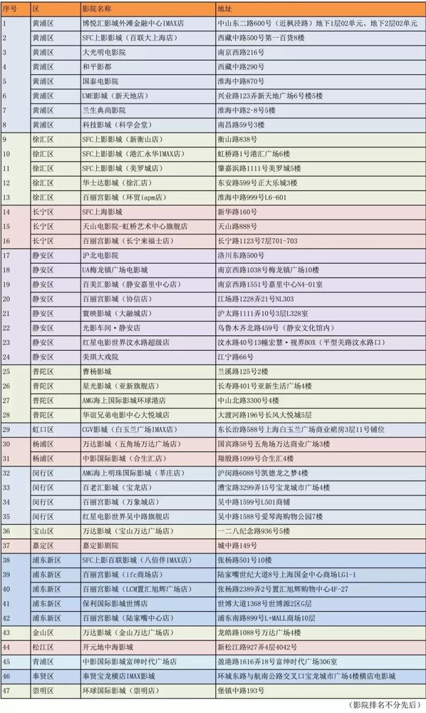 3月,上海国际影视节中心和上海市电影发行放映行业协会启动本届电影节展映影院征选,全市共有100家影院报名。经过实地考察和层层筛选,最终确定了47家指定影院。