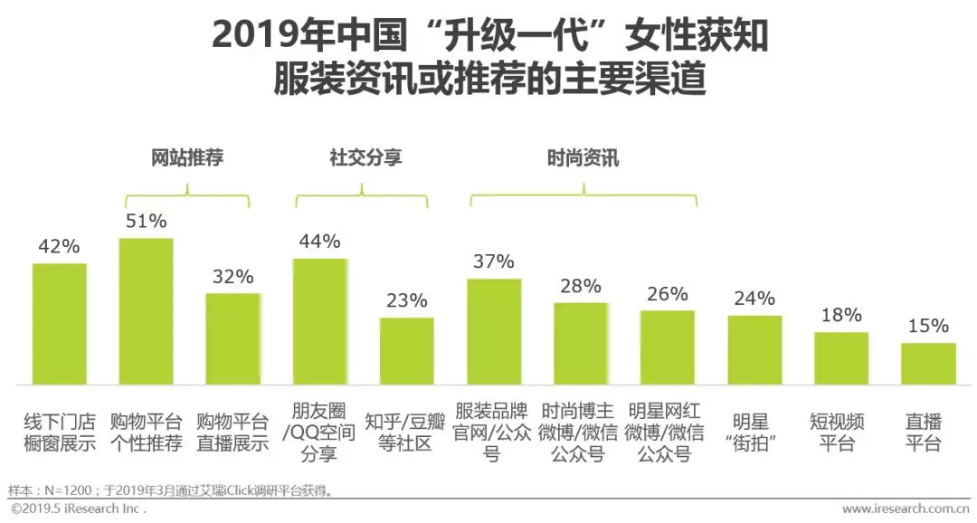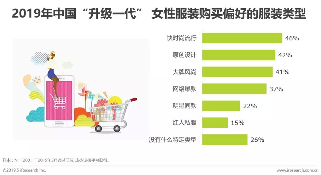 “升级一代”女性服装消费凸显了这一转变趋势,购衣从实用性转向追逐潮流与分享体验,设计师等小众品牌以及个人品牌受欢迎,多方比货理性消费。
