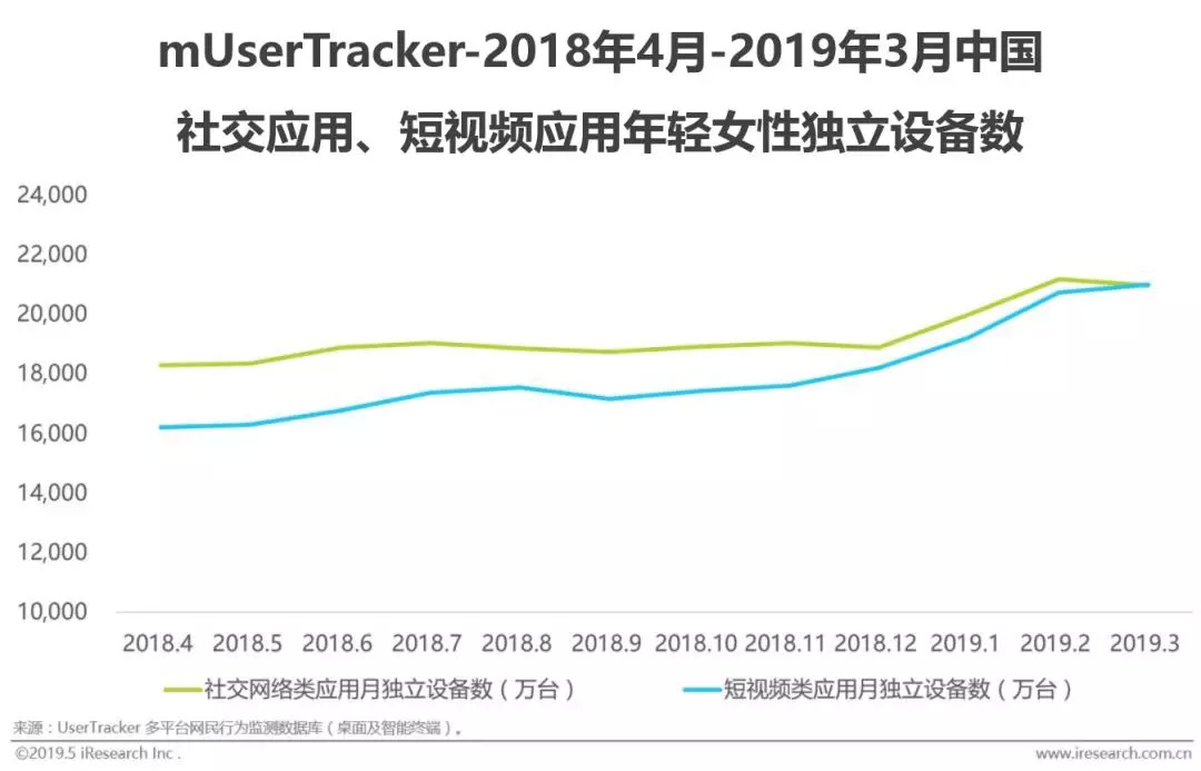 过去一年来,在30岁以下年龄的女性用户中,社交应用独立设备数保持平稳,短视频独立设备数增长趋势明显,网络直播占据了用户越来越多的时间。