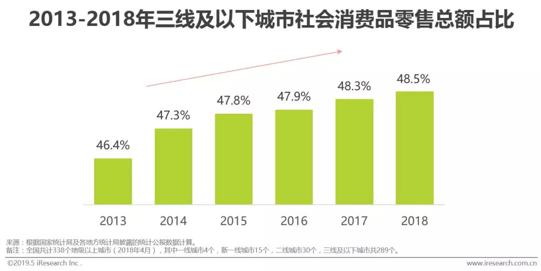根据中国国家统计局相关数据,自2005 年伴随内地多省份人均GDP 跨越1000 美元门槛,三四线城市消费逐渐崛起。