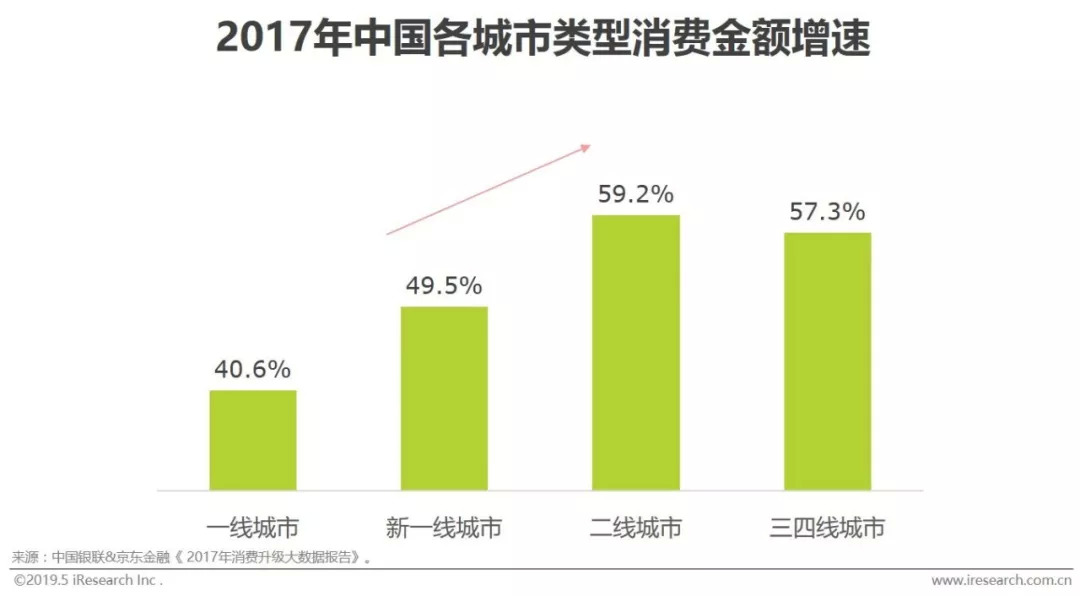 根据《中国银联&京东金融:2017年消费升级大数据报告》,三线及以下城市消费支出同比增长率近一线城市1.5倍。
