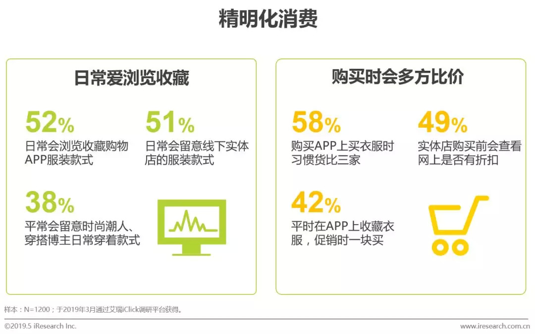 服装消费时习惯精明选货,做“比货王”,习惯日常浏览收藏对比电商平台与实体店的款式与价格