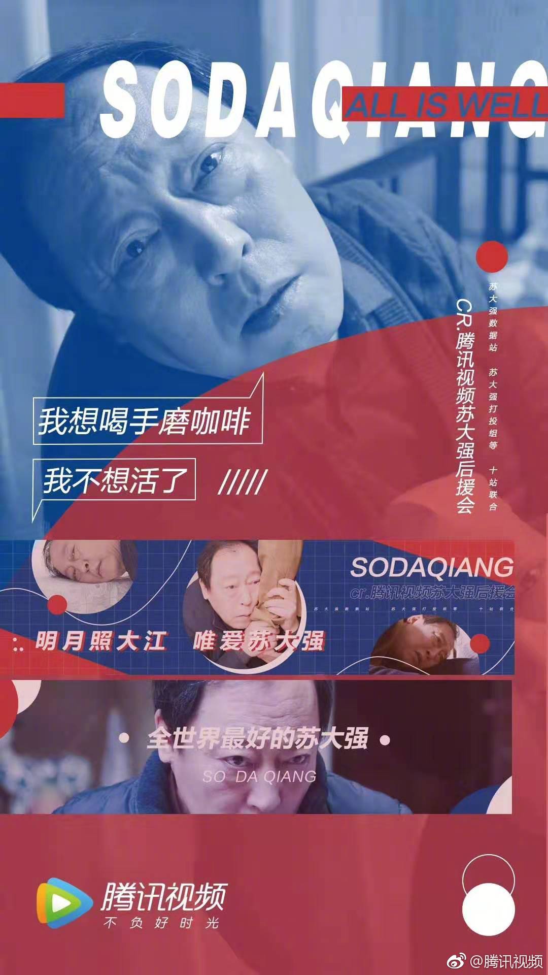 在社交网络上,网友们乐此不疲地用他的台词玩梗,甚至有漫画家为他创作了系列表情包,就连刚推出偶像选秀节目的腾讯视频,都来追苏大强的热度,打出“明月照大江,唯爱苏大强”“全世界最好的苏大强”的应援口号,让老艺术家享受了偶像明星式的待遇。