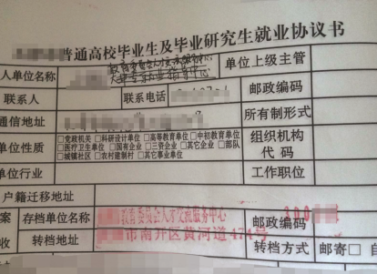 但让周岩纠结的是,辅导员曾向他表示没有签就业协议的学生的档案容易在派回生源地的过程中遗失。“当时辅导员给我举了一个2013级学生的例子,因为没有签就业协议,档案被打回原籍,但以打回原籍的形式派送档案会出现档案遗失的情况。”