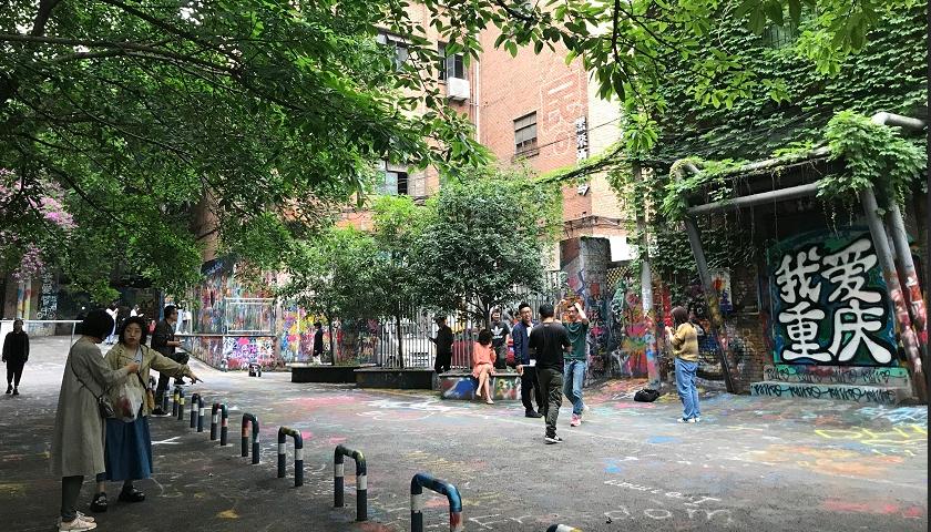走到铁路旁,可以看到军哥书屋,这里是很多人心中的网红地。能淘到各种重庆文化历史书籍。