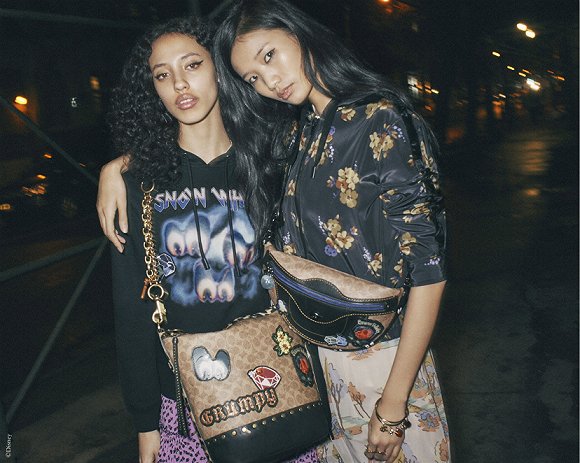以Coach为例,logo产品沉睡几年后,配合着品牌年轻化策略,以更活泼的方式出现在市面上。去年5月,Coach和美国插画师Keith Haring合作,用小恐龙、骷髅头、小人、外星生物等活泼的图案,搭配经典C logo试水。获得不错的市场反响后,又和迪士尼合作了暗黑童话系列,把logo做在了包袋、成衣和鞋上。