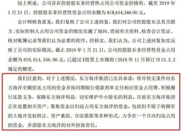 今年2月14日, 东方海洋因重组期间控股股东未在承诺期限内归还非经营性占用公司资金,股票触及其他风险警示情形,股票简称由“东方海洋”变更为“ST东海洋”,并收到深交所问询函。