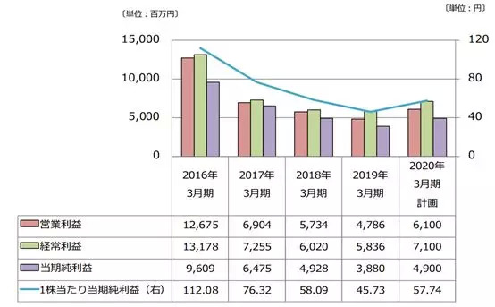 2019年3月期(2018年4月1日 ~ 2019年3月31日),日本的总营业额为451亿日元,同比减少0.4%,营业利润为36亿日元,同比减少16.7%。下表为各业务的具体数字。