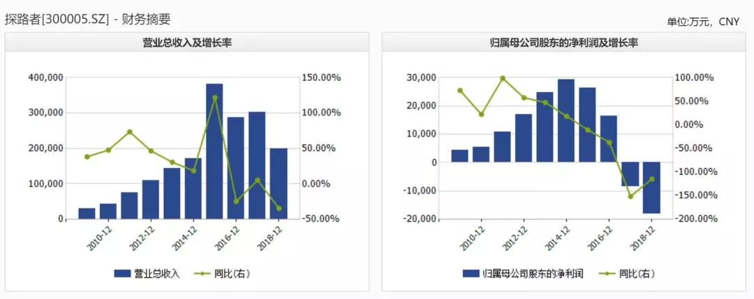 下面这张图比较容易看清楚探路者上市以来的经营情况,探路者已经连续2年亏损,今年如果再继续亏损,按创业板的退市规则,是铁定直接退市的: