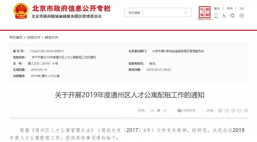 5月21日,北京市通州区人民政府发布发布了一个全国关注的“人才”吸引政策!通州区对于高层次人才租住人才公寓,将给予租金优惠。
