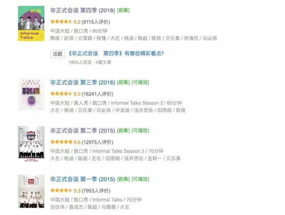 每一季都深陷“穷穿地心”的制作困境,每一季都奔波在招商路上,甚至一度遭遇裸奔、停播,但《非正式会谈》终于磕磕绊绊走到了第五季开播,且前四季评分均在高达9分以上。