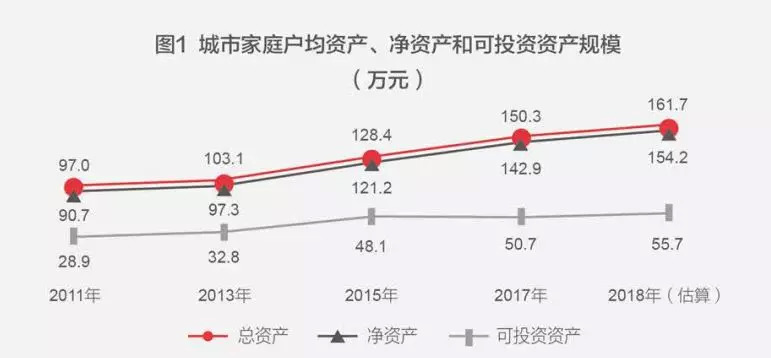 我注意到报告中几组数据显示:中国城市家庭户均资产为161.7万元,可投资资产为55.7万元人民币。资产超过454.5万元的家庭数约占20%。