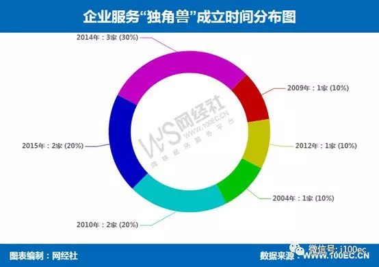 从时间分布来看,2018年企业服务“独角兽”成立时间分布较均匀,平均分布于2004-2015年期间,未出现特殊峰值。