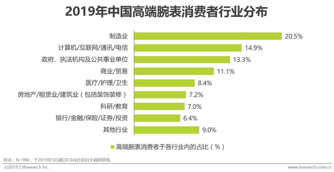 政企单位与高收入行业工作人群拥有高端腕表的数量更多
