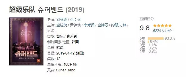 由曾经制作过《Hidden Singer(隐藏的歌手)》《Phantom Singer(幻影歌手)》的制作组推出的发掘隐藏音乐人的第3弹节目《Super Band(超级乐队)》,已经在JTBC电视台播出了七期。在播出的一个多月时间里,这档乐队选秀节目不仅吸引了一大批观众,还让这些观众甘当自来水全网安利,目前在豆瓣上更是获得了9.8分的超高分。