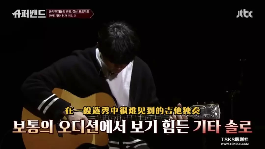 节目一开始,两位19岁的天才吉他少年就用“指弹”在线诠释“原来吉他还可以弹成这样”。高三学生李江浩7岁开始弹吉他,一路横扫韩国的各类大奖;而他的伙伴金英素是2019年日本指弹大赛冠军,一曲在高一时以动漫《你的名字》为灵感而创作的自作曲,精彩至极。
