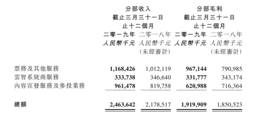 值得一提的是,在按性质分类的费用中,市场及宣传费用15.79亿,相较去年同期32.08亿下降50%。阿里影业为了增加线下沉淀收入,与3500家影院建立合作等动作,在宣传成本的控制上进步不小。因此,在毛利同比降低的情况下,内容宣发及参投业务的营收净利润相较去年同期未必减少。