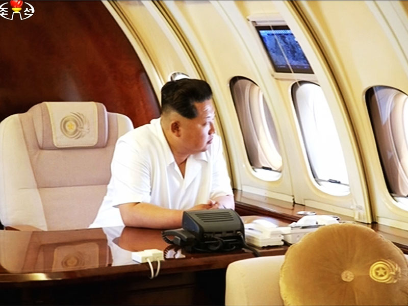 6月25日,朝鲜中央电视台当天播出了金正恩携夫人李雪主视察新完工的平壤顺安国际机场并登上专机体验的画面。