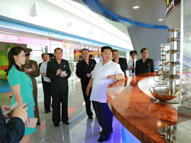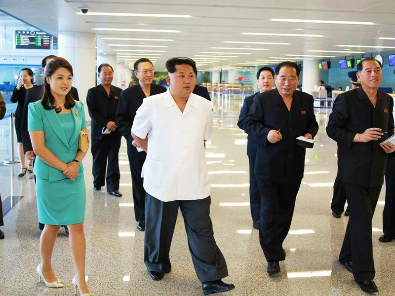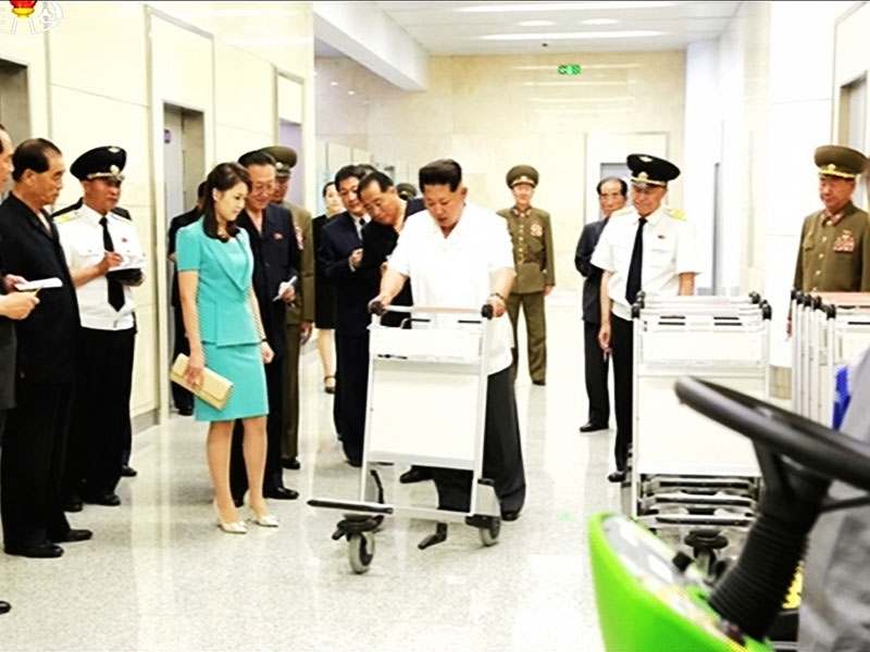 金正恩携夫人视察新航站楼。这个新建的玻璃航站楼是旧航站楼的6倍,但是据信旅客人数并不太多。