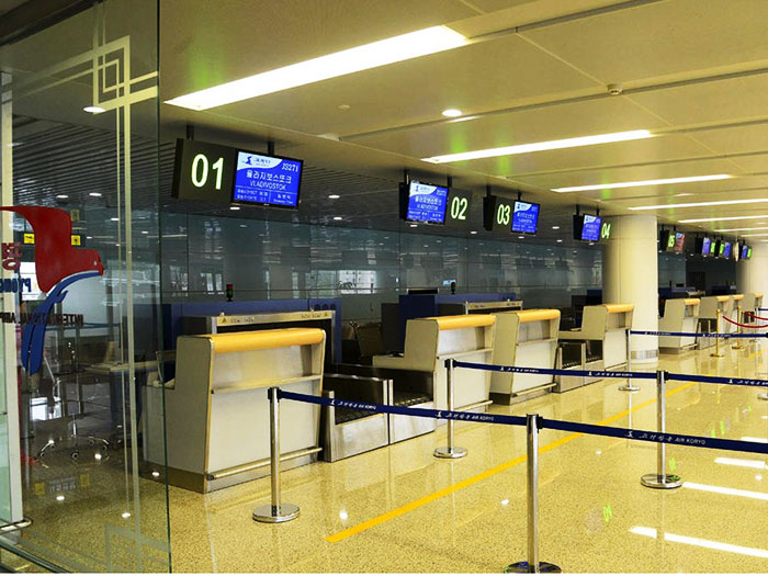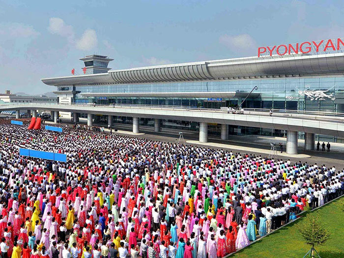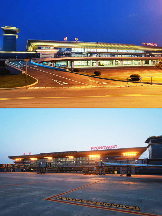 新完工的平壤顺安机场航站楼全景。