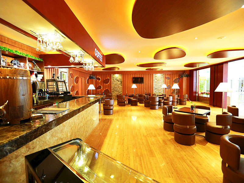 新航站楼内饮料售卖处的服务员。
