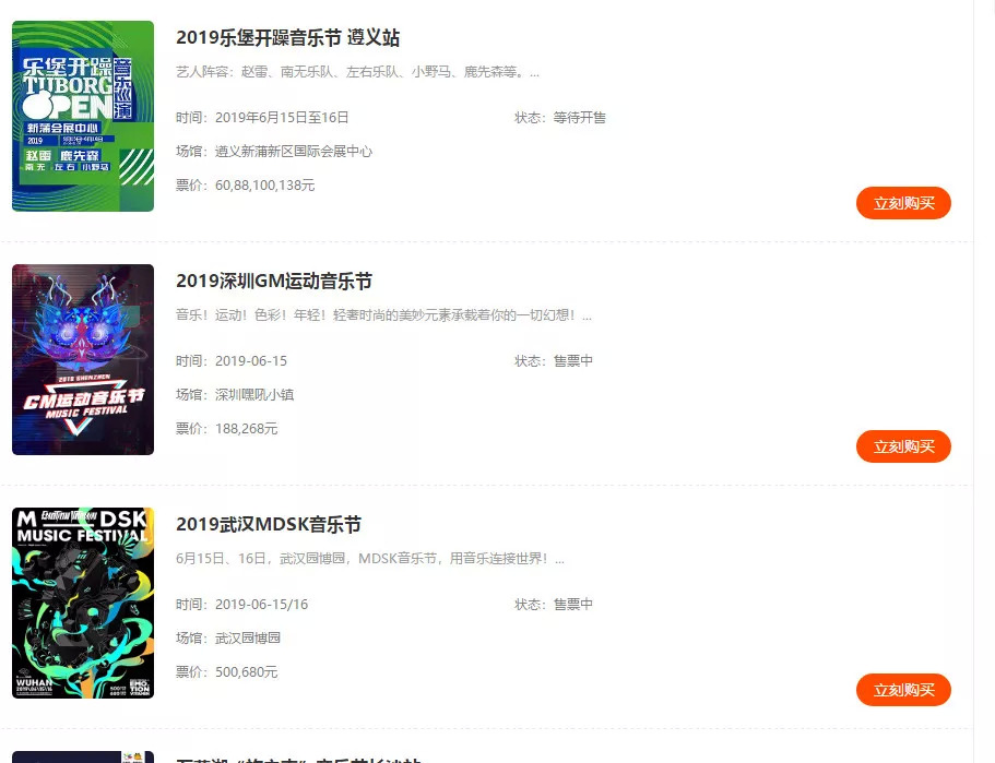 这两年国内音乐节场次数量几乎都在260场以上,据不完全统计今年已经举办的音乐节数量不低于20场次,而根据大河票务网信息显示6--9月份将要举办的音乐节已经在开始售票的有19个,此外还有一部分的待定音乐节。