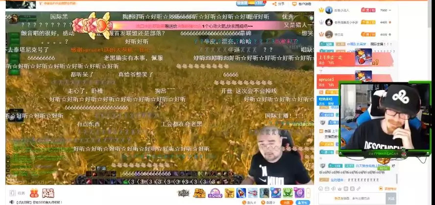 5月24日,在美国差不多中午的时候,直播平台Twitch上依然有不少从前一个晚上熬到此时的主播。其中有位叫ratfinkreagan的主播,正在和自己粉丝们一起收听来自太平洋对岸的歌声,而这位演唱者则是斗鱼平台的魔兽主播黑欢喜——老黑。