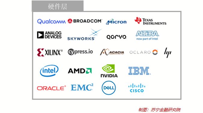应用层是指面向用户的应用服务,比如国内的微信、支付宝、苏宁易购等,又比如国外的谷歌、微软、Twitter、Facebook、Instagram等。由于在应用层的美国企业对于国内无论是市场占有率还是影响力都较为有限,而且又非不可替代,这里就不一一列举了。