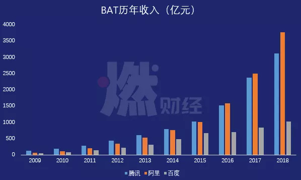 BAT这个名称的确切出处,已经很难考证。2011年,百度市值达到460亿美金,成为当时国内市值最高的互联网公司。与此同时,腾讯和阿里也已奠定各自的江湖地位,巨头雏形初显。大约在那个时候,BAT的说法流传开来。
