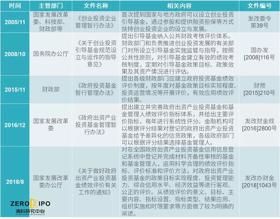 从2005年开始,我国陆续出台了政府引导基金相关政策文件,主管部门包括发改委、科技部和财政部等,对于政府引导基金的定位、绩效评价的主体和内容有一个逐步明确的过程。后续十年间,我国政府引导基金发展较为缓慢,相关政策文件的落地性不强。