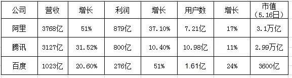 前几天,腾讯、阿里、百度相继发布了年报和一季度财报,有喜有忧。