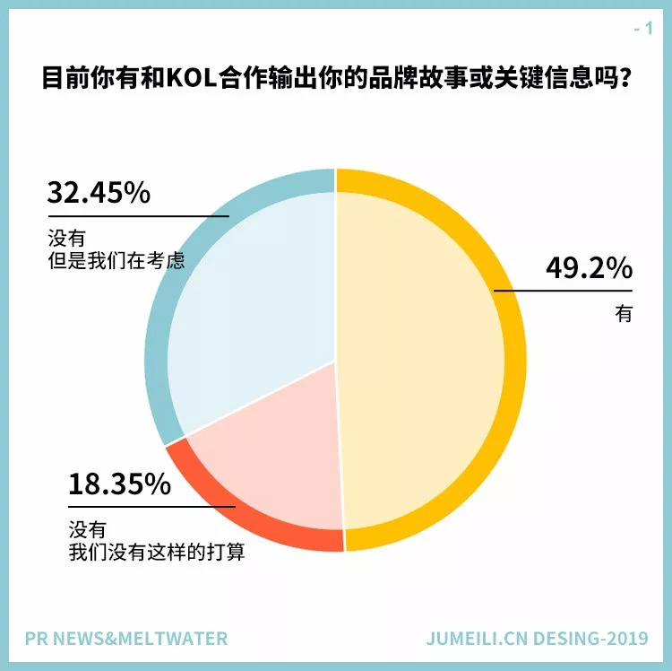 从图1中可以看出,绝大多数的美国公关专业人士(82%)都很重视KOL营销,一部分人正在和KOL合作,其他人正在考虑合作。近一半的公关专业人士(49%)表示目前有在合作。