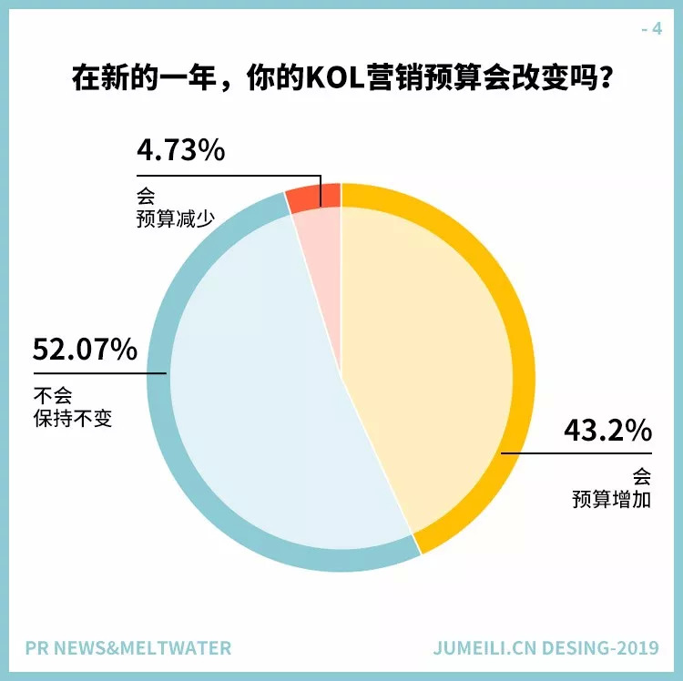 另一个表明KOL越来越被接受的指标是预算。高达95%的受访者表示,在未来的一年里,为KOL制定的支出计划要么会增加(43%),要么会保持稳定(52%)。