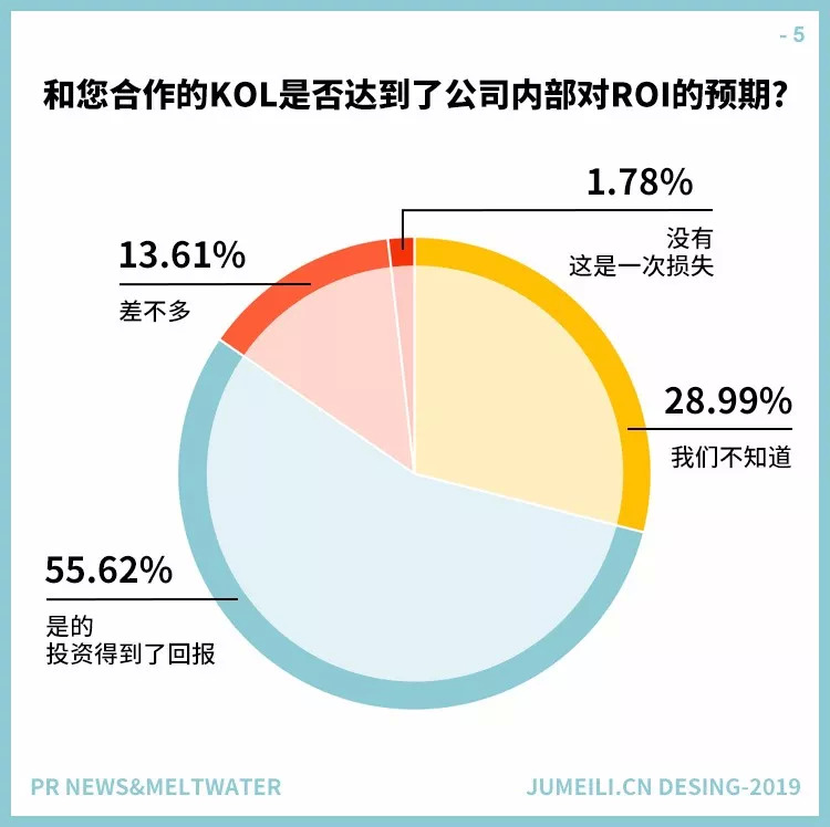 然而,衡量KOL的影响力仍然具有挑战性,有相当一部分人(29%)不知道他们所做的KOL营销是否已经实现了目标。这似乎表明缺乏对测量结果的关注,这也可能反映出他们不知道如何最好地衡量KOL的投资回报率(ROI)。